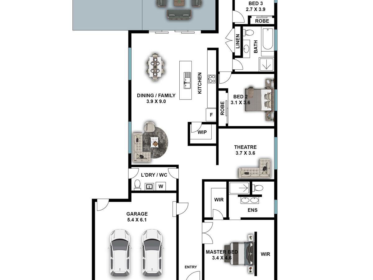At the heart of the home, the expansive dining and family zone (3.9m x 9.0m) seamlessly integrates with a gourmet kitchen and flows effortlessly to the alfresco through stunning timber bi-fold doors, creating a breathtaking indoor-outdoor connection.